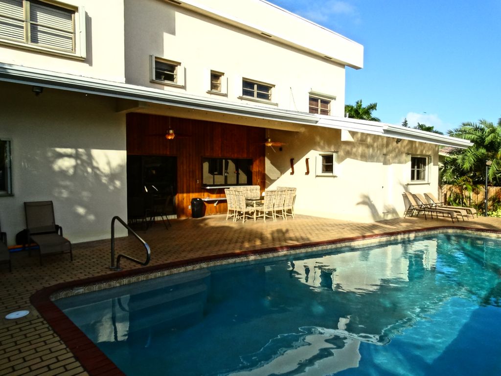 The waterfront home has gorgeous water and skyline views. Enjoy swimming and sunsets views put your boat on up 70 feet of to the private dock with the ocean access .Setting between the city and the beach There’s a heated pool enjoy swimming and sunsets off waterfront views. Covered veranda and barbecue, as well as outdoor sitting and dining areas. By the water, you’ll find a boat dock, kayaks. Wood floors and high ceiling. The fully equipped kitchen. For entertainment,65 inches TV, WiFi internet, there are pool table, a electronic music keyboard ,air conditioning. All bedrooms with doors. Upstairs master bedroom with king bed and TV, and en-suite bathroom and bedroom with 2 twin beds and, bedroom has queen bed and bathroom with bathtub ,loft with queen bed . Downstairs, there’s bedroom with a king bed and TV, and en-suite bathroom and bedrooms with queen beds and TVs, half bathroom. 2 Twin rollaway beds.Washer ,Dryer .Home has private courtyard, or take in the city’s beaches and nightlife, just a short boat ride or drive away. From the home location it’s 5-10 minutes to a Hollywood Beach, grocery store, restaurants, shopping and nightlife, Hollywood Circle and Hollywood Boardwalk, Gulfstream Racing & Casino and Mardi Gra Casino, Golf Course . The Fort Lauderdale airport is about a 6-mile trip. Miami international Airport 20 miles. South Beach, Lincoln Road and Ocean Drive and downtown Miami are just over 15-20 miles away, Bal Harbor shops is 8 miles away.