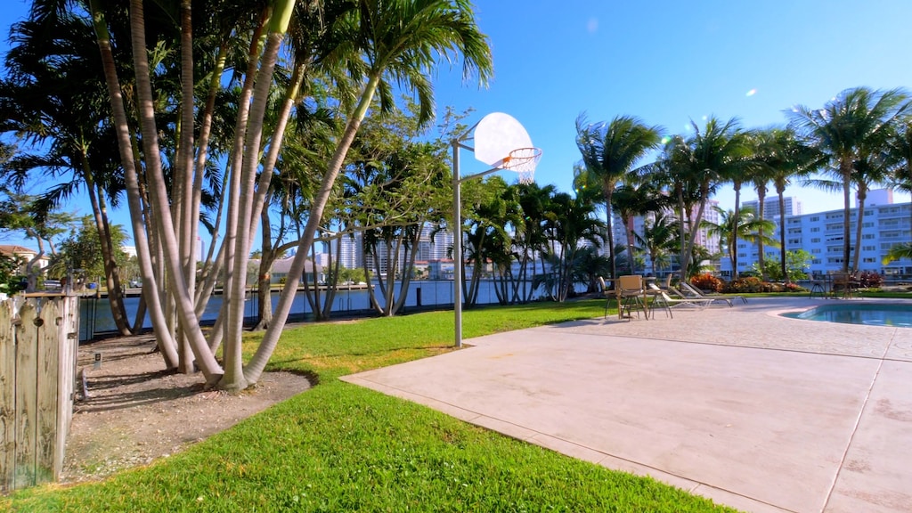 Your getaway is a sun filled home with water views from most every room; it is designed and decorated to provide elegant comfort and convenience. The backyard is spacious and sunny and surrounded by numerous coconut palms that sway in the gentle breezes. A covered back porch with comfortable couches, a gas grill and and an outside eating table overlooks a 16 x 32 ft. in ground pool. There’s also a hammock under mature trees for an afternoon siesta, and a basketball hoop onsite equivalent to a 1/2 court.