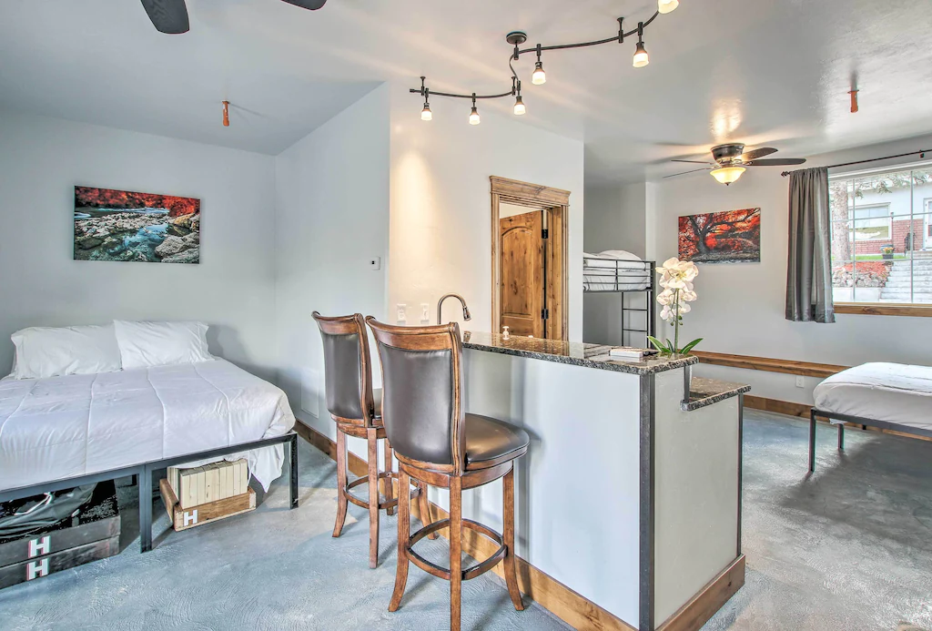 Looking for a relaxing getaway? Look no further than this studio vacation rental in Lava Hot Springs. This 1-bathroom studio is ideally located just 2 minutes from the hot pools, ensuring the whole family will be able to unwind during your stay. Whether you choose to spend your days soaking in the geothermal waters known to rejuvenate and relax your mind, watching wildlife at the Sunken Gardens, and even shopping for souvenirs, this property will have you refreshed from the moment you arrive!