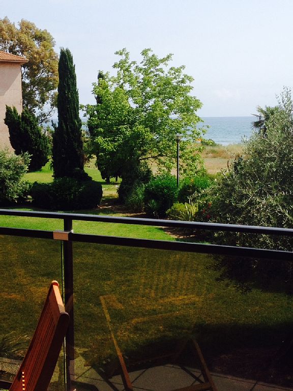 Beautiful apartment 1 living room and 1 room with bunk bed, bathroom The apartment complex 'les Marines de Moriani' is directly surrounded by a 3-hectare garden on the beach. The apartment is newly furnished with air conditioning, new kitchen, hardwood floors, a balcony about 8 m� with table and chairs and sea views. The apartment is 32 m� in size, has a living room with a pull-out bed, LCD TV and DVD player, a bedroom with closet and bunk beds, a bathroom with bath and separate toilet. The complex has a swimming pool, 2 petanque courts, 2 tennis courts and a children's playground with table tennis. It is possible also in the local laundry wash. Dirkt the swimming pool there is a small restaurant / pizzeria.