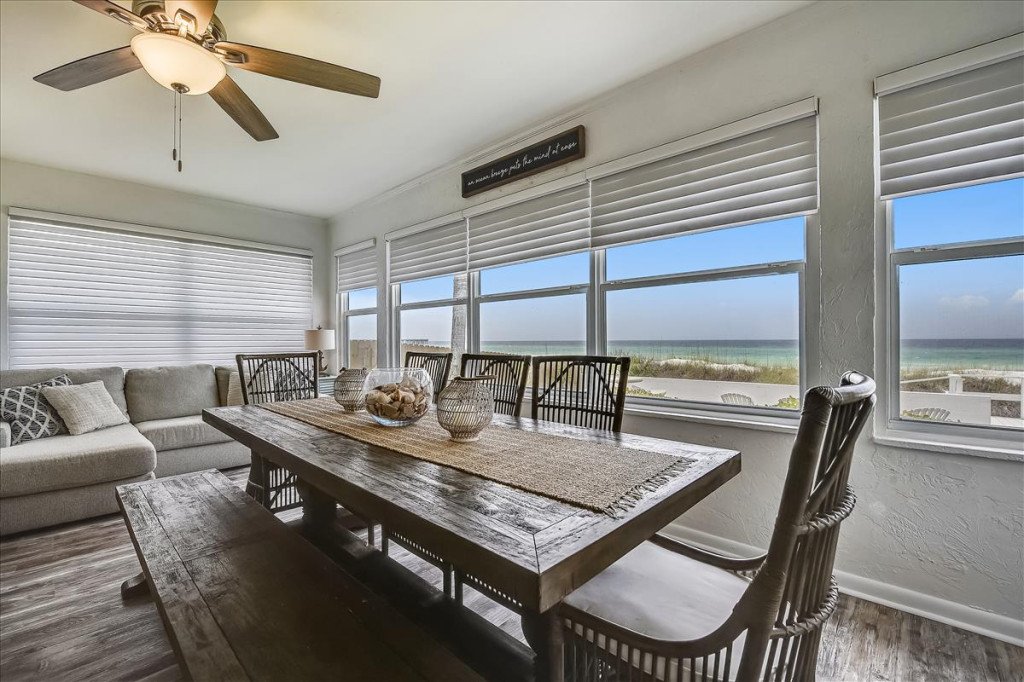 Imagine waking up to the waves crashing on the sugar sands of Panama City Beach at this beautiful 4 bedroom, 3 bathroom beach cottage. With nearly 2,000 sq ft, you and your loved ones will be able to enjoy views of the Gulf and direct beach access from your 50’ patio. The sun room extends over the entire backside of this home, boasting panoramic views of the Emerald Coast.