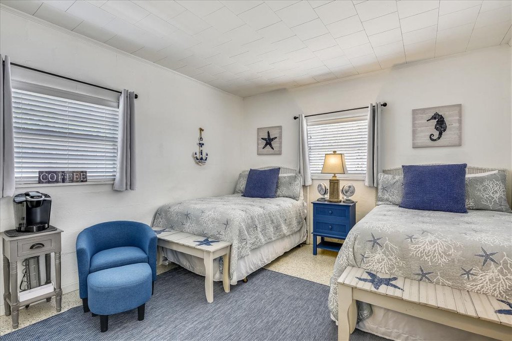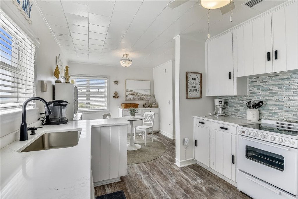 Imagine waking up to the waves crashing on the sugar sands of Panama City Beach at this beautiful 4 bedroom, 3 bathroom beach cottage. With nearly 2,000 sq ft, you and your loved ones will be able to enjoy views of the Gulf and direct beach access from your 50’ patio. The sun room extends over the entire backside of this home, boasting panoramic views of the Emerald Coast. The primary bedroom house a king, while the other two guest rooms in the main house features a queen bed. The guest house features 2 full size beds, en suite bathroom, and its own private entrance separate from the main house. This newly renovated kitchen is stocked with everything you will need to prepare a meal for you and your family to enjoy while taking in the sights and sounds of PCB in the sun room. Cottage by the Sea is located within walking distance of Pier Park, Thomas’s Donut Shop, and more! Absolutely NO PETS ALLOWED Everyone in the unit must be 25 or older unless they are a child of a registe