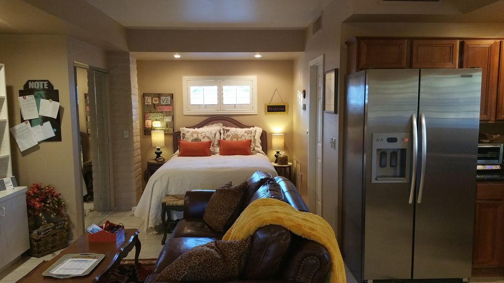 Magnificent private property with it own Private Guest Casita. Located in the perfect location in Scottsdale. See photos which to not do justice the property. Play Tennis ct, basketball, 45\' swimming pool, viking outdoor Kitchen. Laundry facilities available upon request. Fun place to hang and great location to sports facilities, freeway access, night life. Professionally decorated. Fully loaded casita and the setting is perfect. This casita is a studio with a stainless steel kitchen appliances. Beautifully maintained property.