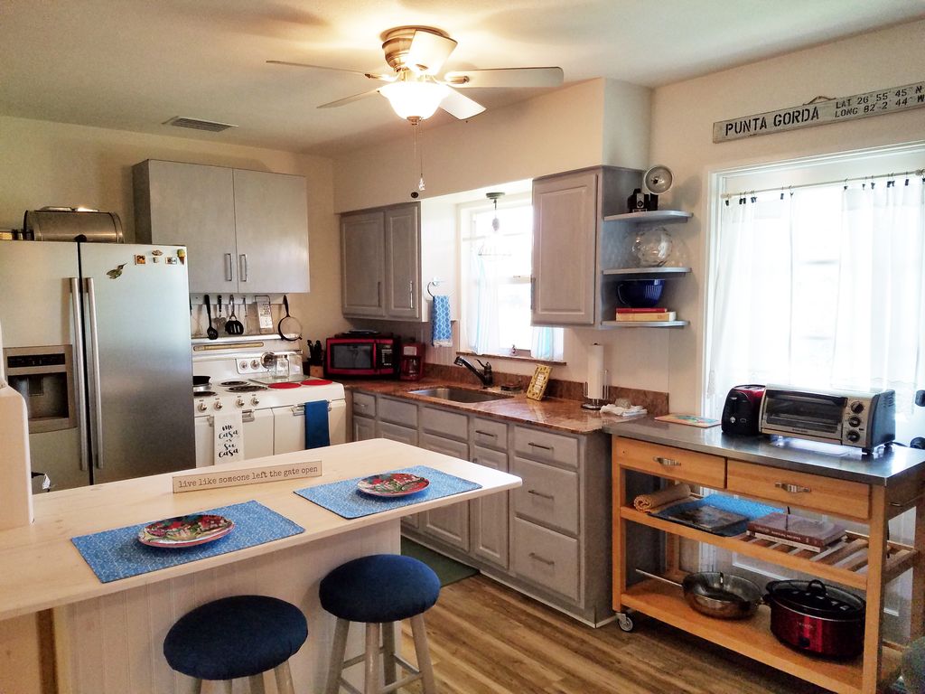 Historic area of PUNTA GORDA FLORIDA! Vintage 50\'s duplex in the heart of the historic area, walk to the Harbor, play Pickle Ball, Tennis, FISH from the pier, Walk or Bike to restaurants, shops, cafes or Visit Fisherman\'s Village! Take a sunset cruise or a day trip to Cabbage Key. Or sit under the coconut palms with your favorite book. Rent a Boat, Gorgeous white sand beaches about 45 min. away, Nature parks for amazing wildlife viewing! Ballparks... catch the RAYS or the RED Sox spring training. (Check out Allegiant Air, they fly right into Punta Gorda from many locations) Punta Gorda also offers FREE loaner Bicycles! So much or so little to do, you decide!