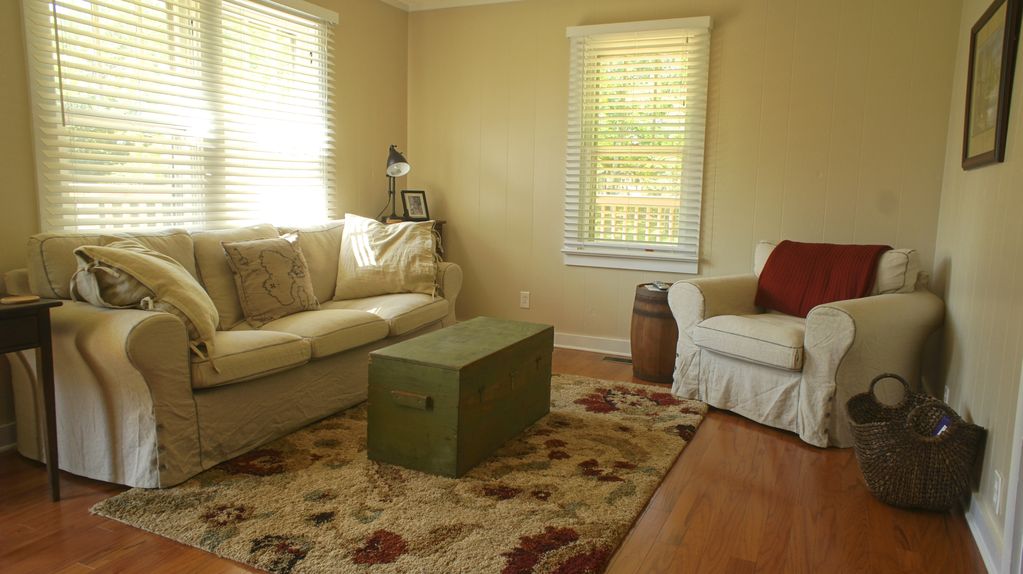 Welcome to The Tarwater House! This cozy little cottage was built in 1946 by my grandparents and totally remodeled in 2013. It boasts lots of character and amenities for your convenience. Master bedroom has a king bed, second bedroom has a queen bed and the third bedroom has two twin beds. All of the bedrooms are equipped with smaller TV’s and DVD players. The Living room is equipped with a Smart HDTV and wireless internet is provided for your stay. The kitchen is fully equipped - stainless steel appliances, all dishes, cookware, crockpot, etc., are provided. An outdoor charcoal grill is also provided for your use. We have a large field that you are welcome to use for croquet, volleyball, bean bag toss, horse shoes, etc. Enjoy the deck furniture as well! This little cottage has everything you need and more. Minutes from attractions and The Great Smoky Mountains.