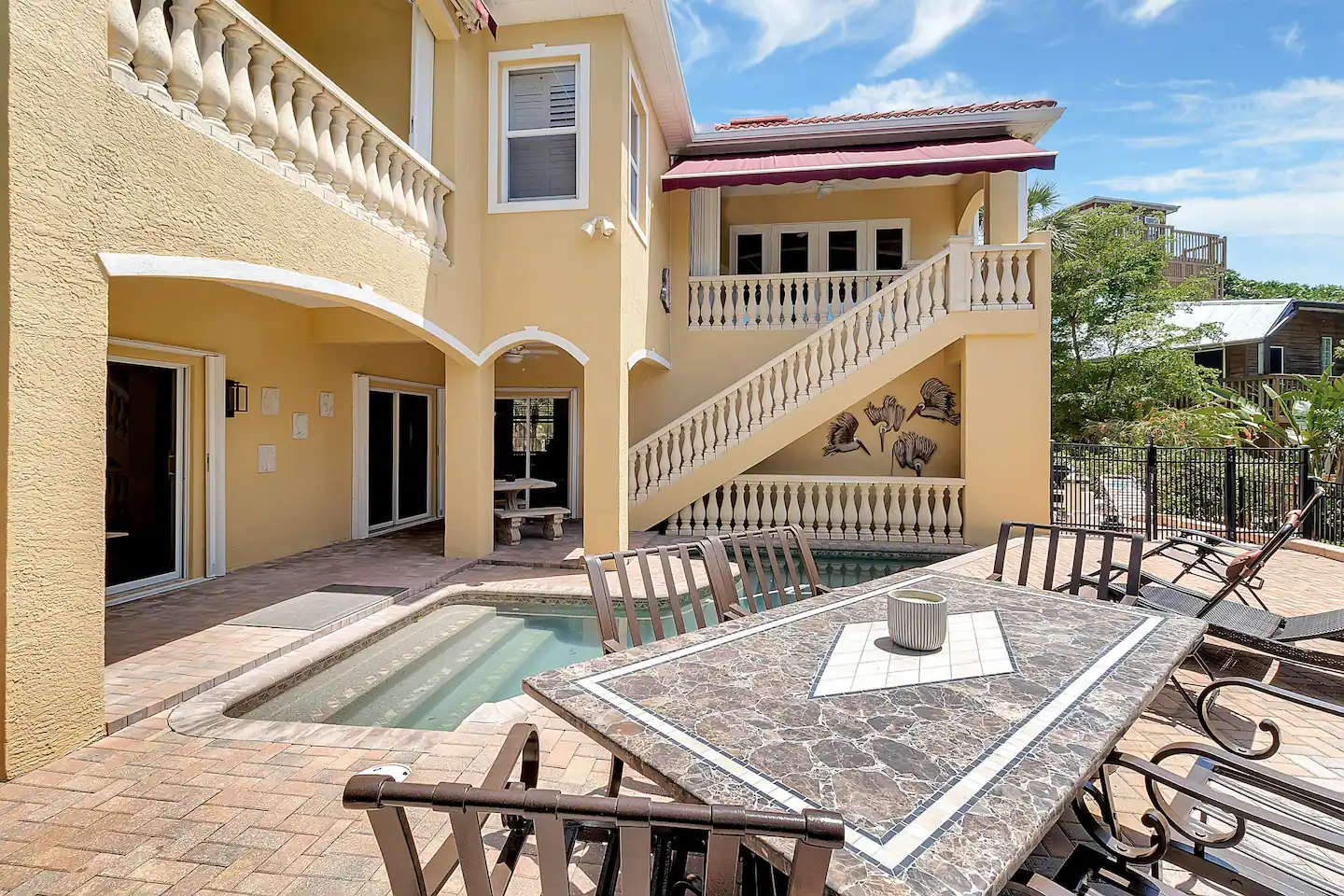 It is hard to find a place for 10 people and we had a great time here. There was ample room for five adults and five children. The pool is very small but the kids loved it. The access to gulf and bay was appreciated by the fishermen in the group. It was quiet and safe.