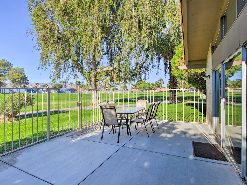 The condo boasts vaulted ceilings, an abundance of natural light, and stunning views of the San Jacinto Mountain Range.