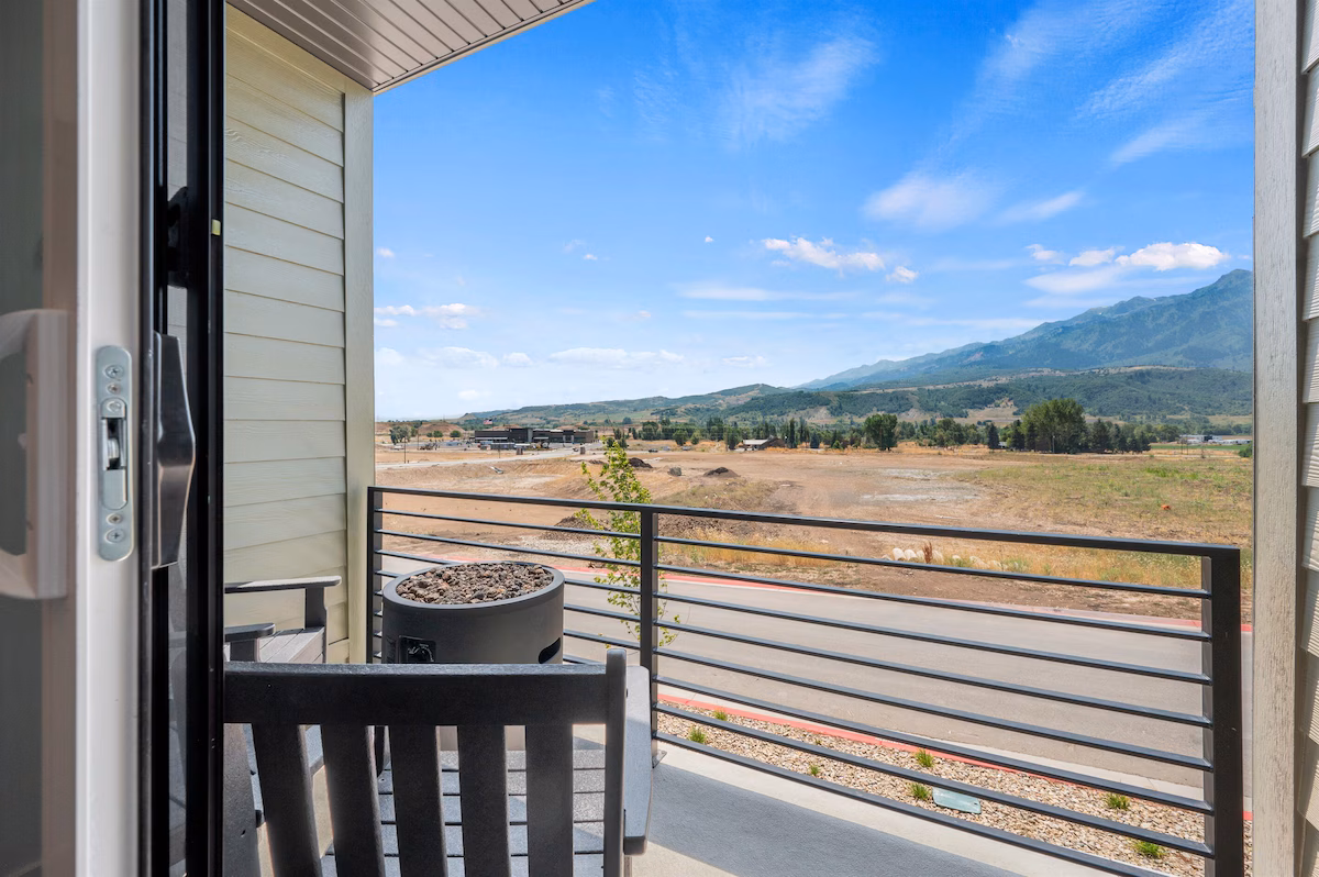 Amenities include 4 smart TVs, fireplace, free wifi, a balcony, a gas fire pit, a charcoal grill, and free use of the community amenities such as an outdoor pool during summer months, 2 hot tubs (year-round), Pickleball courts (2), Patio areas, and a ski shuttle to Snowbasin right from the development.