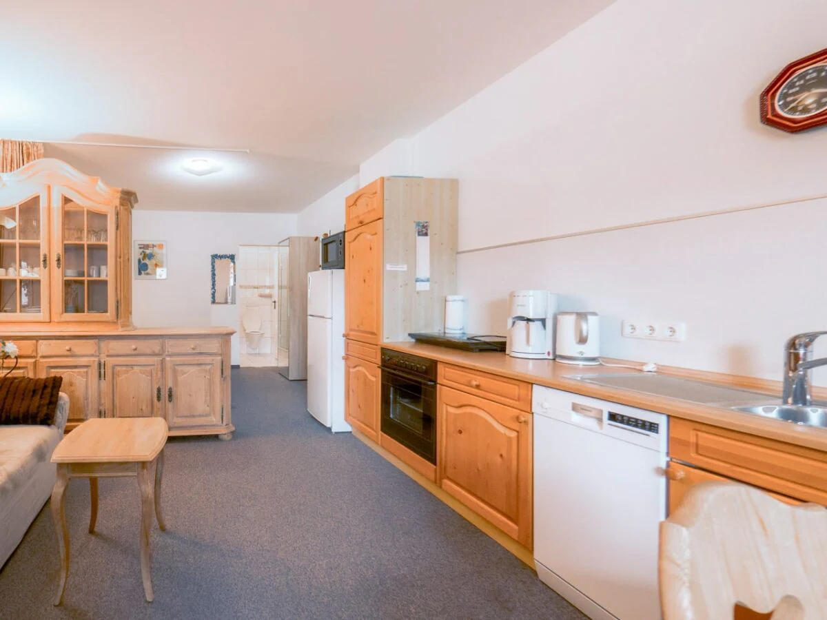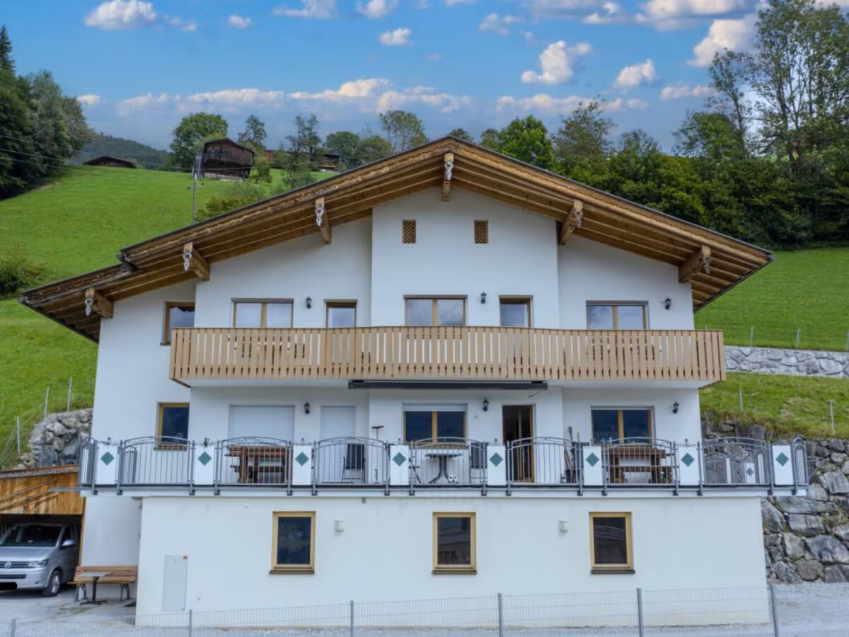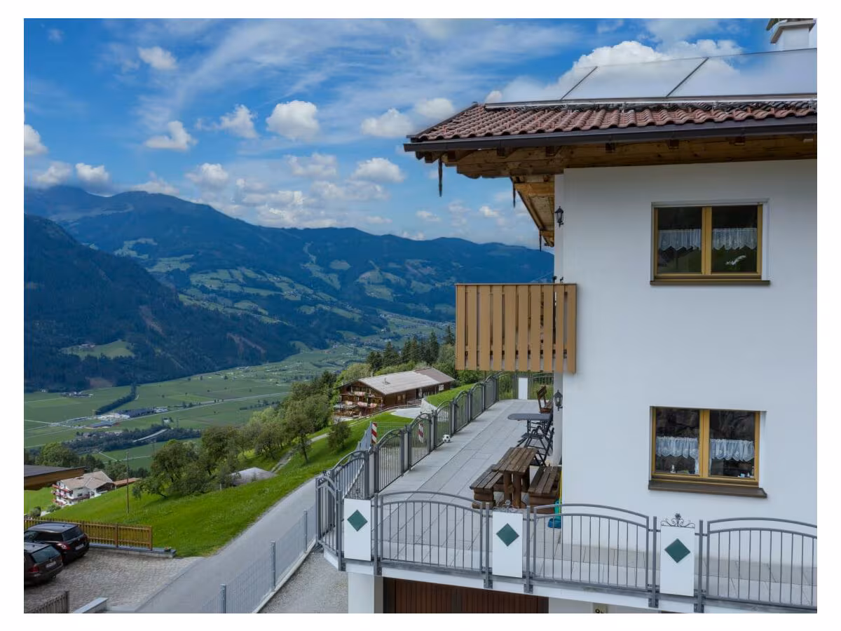 There is approx. 110 m² of living space on the upper floor. The balcony runs the entire length of the apartment in the Zillertal architectural style. The center of the holiday home is the large lounge. On one side is the modern kitchen, which is fully equipped.