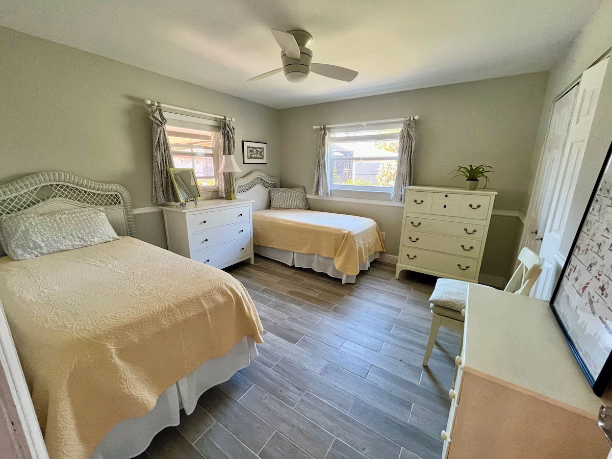 Ceiling fans in the bedrooms and living room for additional cooling and comfort