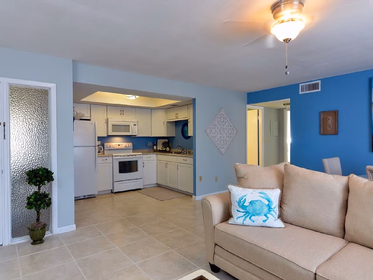 Beautiful newly upgraded condo on Venice Island. One king size bed in a sizable master bedroom with 2 twin beds in the second bedroom. Full kitchen and dining area, flat screen TV with cable and internet service. Condo community pool. Tennis courts, movie theatre and lots of restaurants and shopping minutes away. Venice beach is a nice walk or bike ride away as well as Sharkey\'s Fishing Pier and Lakes of Venice Golf course. Siesta Key Beach approximately 16 miles, Nokomis Beach and the Jettys about 2 miles. Walking distance to the Venice Base where many festivals take place. Condo has everything you will need to enjoy your stay plus beach items such as a rolling cooler and beach towels.