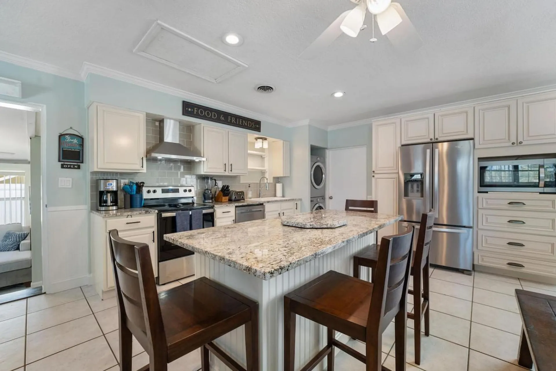 Great space and home for our family vacation! The kitchen had everything we needed to prepare meals at home. Easy drive to the beach. The pool and backyard was perfect for morning coffee and relaxing after a day at the beach!