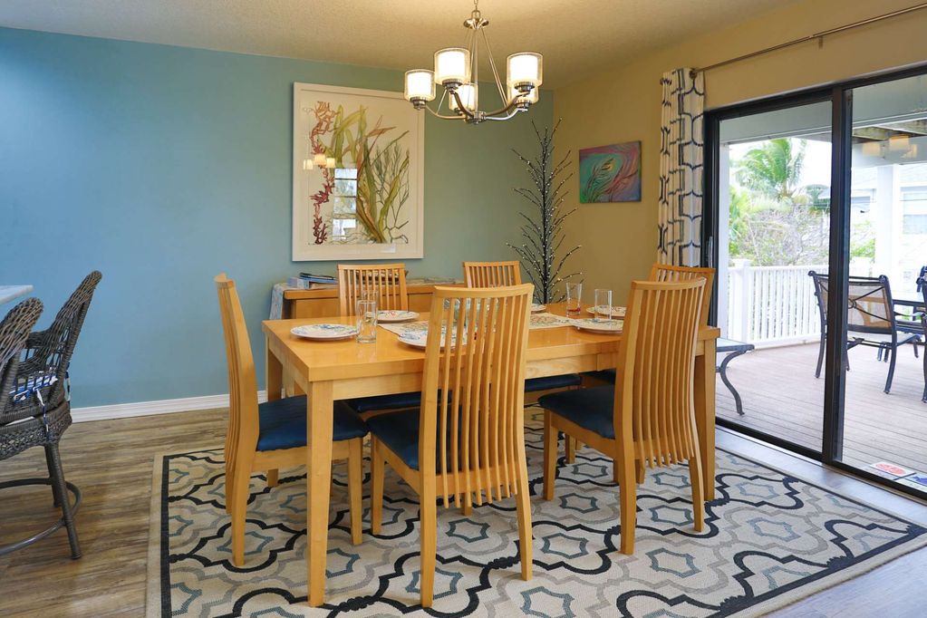 The large, completely renovated kitchen features new appliances with everything you need. The wraparound deck includes a table with seating for 6-8 and has partial views of the Gulf and Bay.