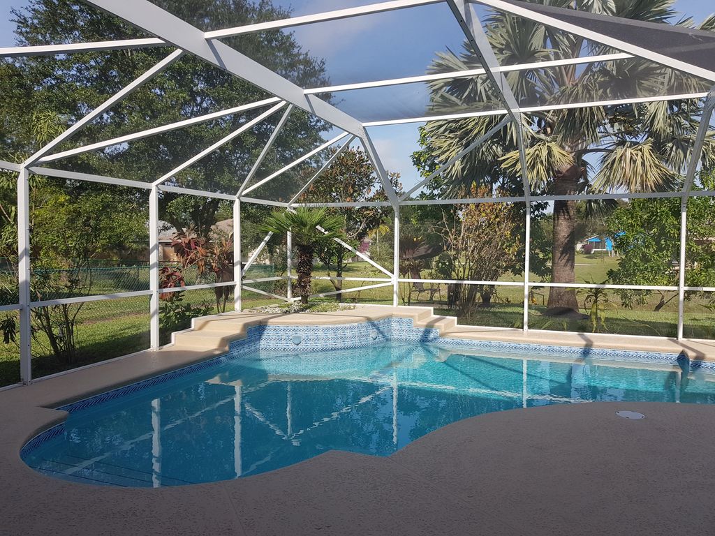 Beautiful house, very well furnished. This home has many great features, 2400 square feet of living area in addition to a double car garage and covered-in pool surrounded by a beautiful garden. Located in Port saint- Lucie which has a great variety of restaurants and treasure coast shopping mail.
