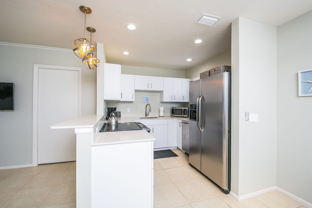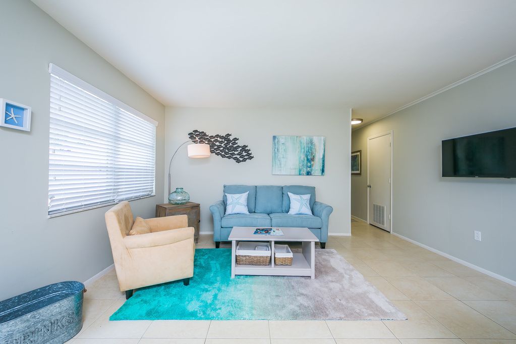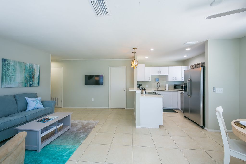 Bring your bikinis and board shorts to this lovely 2 bedroom, 2 bath villa a short block to the gorgeous white sand beaches of Anna Maria! Updated furnishings and amenities abound at this quaint vacation destination, sure to be loved by the whole group. Enter through the front door to find yourself in the bright and beachy open-concept living area, perfect for spending quality time with the family as they enjoy home prepared meals compliments of the fully stocked kitchen. There is a king bed with TV and en-suite bath in the first bedroom, and 2 twins in the second bedroom. A private heated pool, outdoor shower, propane grill, stainless-steel appliances, cable TV, wireless internet, nationwide calling, and private laundry facilities are included with this marvelous beach getaway. Bikinis and Board Shorts accommodates up to 4 people, so grab your beach gear and come enjoy the island life! Bikinis and Board Shorts B can be combined with the 2 bed/1 bath A side to produce a 4 bed/3 bath family paradise with 2 pools that sleeps 8 people.