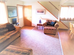 The main level has a nice size living room, TV/DVD, dining area, one bedroom, and