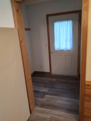 is a mudroom at the rear of the unit where you can hang wet gear or dirty shoes