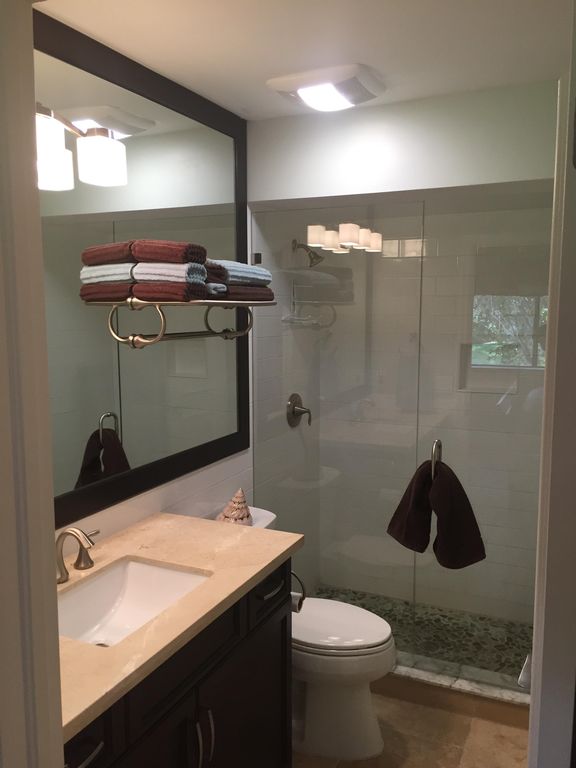 Notice to our guests: Our association doesn\'t allow the overnight parking of Pickup Trucks or Motorcycles in our complex.Absolutely stunning 2 bedroom, 2 bathroom Club Cottage. This cottage has been renovated from top to bottom with the finest material. Travertine marble floors in different shapes & sizes throughout. Fully equipped kitchen has high end cabinets with self closing drawers, granite counters, stainless steel appliances & tumbled marble backsplash. Both bathrooms have been exquisitely renovated, with glass enclosed shower in the master bathroom with beautiful vanities & marble counters. The master bedroom has a king bed. The 2nd bathroom has been completely renovated with a glass enclosed tub/shower. The 2nd bedroom has a queen bed. Living area boasts open space with beautiful furnishings to make you feel at home. 3 flat screen TV\'s. Cook outdoors with our new gas grill, and enjoy the open patio with a tranquil water view. One block from the community pool, with bathrooms, shaded seating area, and viewing decks.