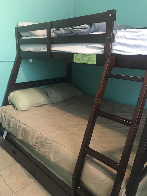 - Comfortably Sleeps 6 People. 1 Full size bed, 1 Full Over Twin Bunk Bed, 1 Sleeper Sofa.