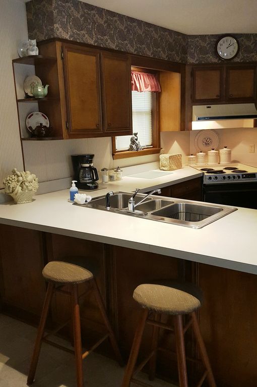 Coffee / Herbal Tea, Creamer, Sugar, Flour and Assorted Spices, Paper Towels , Trash Bags, Utensils , Cookware.
