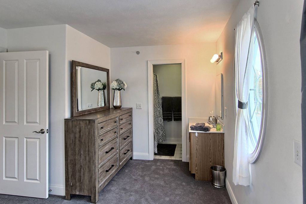 The interior space is bright and cheerful, beautifully decorated with care. First floor has a full kitchen for all of your cooking needs. Comfortable living room equipped with a queen size sleeper sofa with memory foam topper to accommodate two more guests, smart TV and cable. Dining room with seating for six. Sliding glass doors to balcony overlooking F & M park to enjoy your morning coffee or evening cocktail. Upstairs boasts a full bathroom and laundry area with washer and dryer. Master bedroom has a queen bed, full bath, spacious closet and glass doors to private balcony overlooking the park. Second bedroom has a full bed, closet and TV with cable. All of the makings for a relaxing carefree vacation!