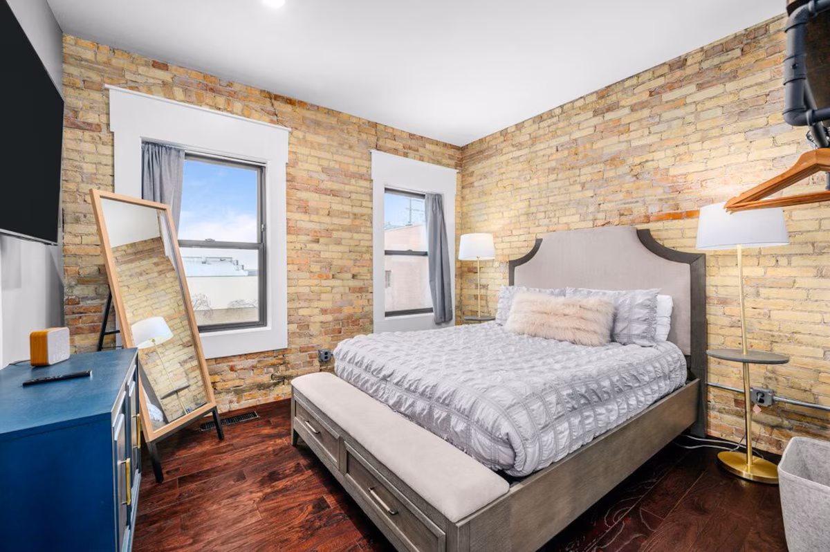 Newly renovated 2nd floor apartment in Downtown Traverse City. This 2 bedroom apartment is equipped with a queen bed in each room, full size pullout sofa and 2 convertible chairs in the living room for extra sleeping space.
