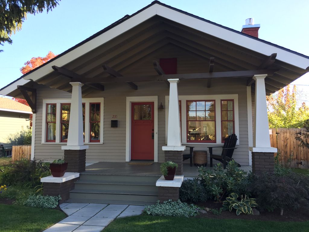 Come stay at our Westside Craftsman Bungalow located in the heart of Bend\'s Historic District. Built in 1919, this home is on the National Historical Register and built for a lumber mill supervisor. We kept the historical elements, but added modern conveniences like central air conditioning & heating, dishwasher and more. Close to all the best that Bend offers but far enough away for quiet enjoyment! Walk to Downtown, Old Mill District, Boneyard and Crux Breweries, Market of Choice, Jackson\'s Corner and more - all within a 5 to 10 minute walk. Bend\'s latest hot spot, The Box Factory, with Immersion Brewing, Atlas Cider, Spoked, Food carts, yoga and summer and winter sports gear rentals is also a 5 minute walk. Enjoy front porch sitting or relax in our large private backyard. You truly get a feel for Bend and its residents in our vibrant neighborhood. Each of the 2 bedrooms has a queen bed with soft sheets and a comforter. The bathroom is large and has a bathtub/shower. Our backyard has lots of grass, BBQ, comfortable seating, great sun and patio umbrella. The backyard is fully enclosed with 6 ft fence making it dog friendly & safe.