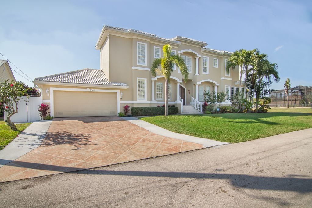 Walking upstairs leads to the loft area with a optional queen bed if requested for extra sleeping guest. Additional living room ,guest queen bedroom with private bath and another upstairs twin beds bedroom with another private tub bathroom. Upstairs open air deck to capture beautiful sunsets This home features a total of 4 bedrooms ( 1 king bed, 2 queen beds, and 2 twin beds) optional queen bed . Located close to Barefoot Beach, Lovers Beach, grocery store ,Best Restaurants. Near Naples beaches and downtown. If you want to vacation in a quiet luxury waterfront home at half the cost of a Naples rental waterfront choose this property. Drive a little save a lot of money for all the fun activities ! Minutes to Coconut mall where you will enjoy fine dining and shopping.
