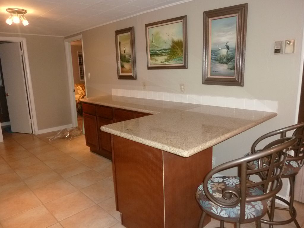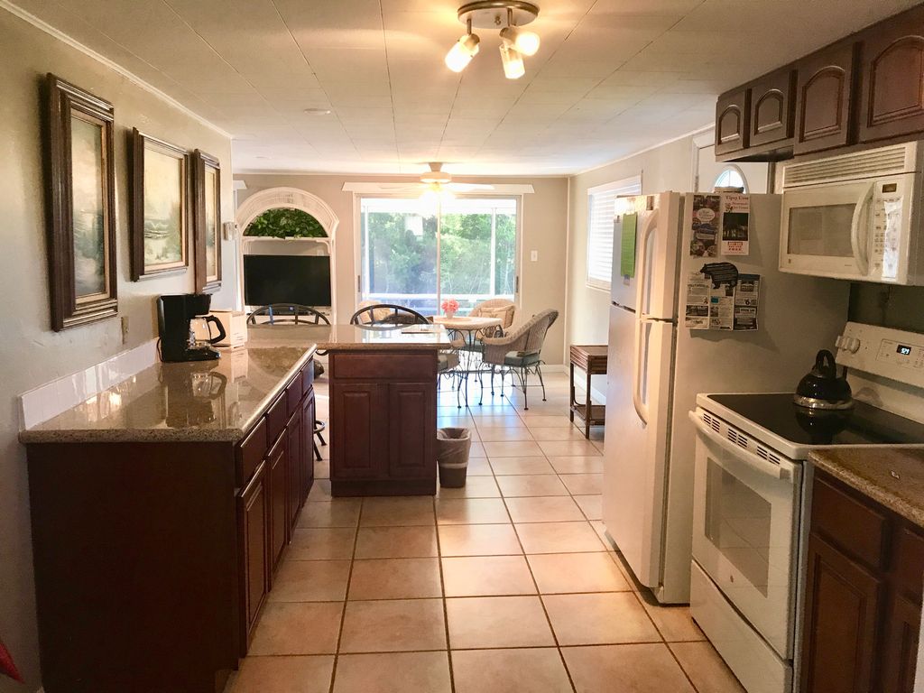 There is a queen size bed in the bedroom and a queen size fold out couch in each unit. There is tile throughout except for the new carpet in the bedroom. You have several dining options - a breakfast bar for two, or enjoy eating at a larger table for 4 inside or the outdoor lanai seating for two. The kitchen has all of the appliances and dishes you will need to make your stay comfortable. There is smart TV with a DVD player for your enjoyment.