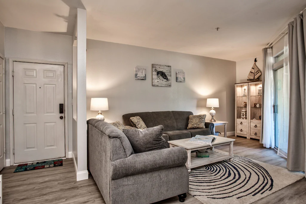 In the living area there is a love-seat and a sleeper sofa bed sporting a foam mattress that can accommodate two young adults. For your entertainment there is a 55 inch Smart HDTV and WiFi internet. A second 43inch TV is installed in the bedroom. You could used your favorite streaming app (Netflix, Hulu, Amazon PrimeVideo etc) to watch your favorite shows in the king size bed comfort.