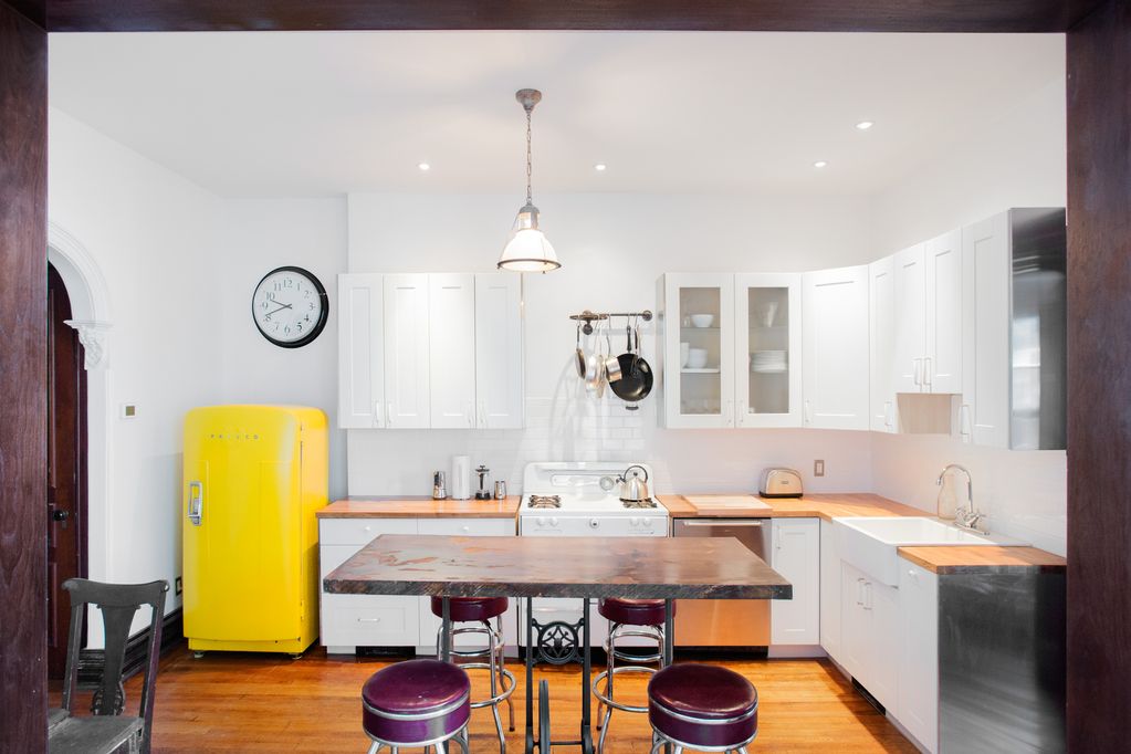 The pre-tin plaster moldings, solid mahogany stairwells, pocket doors with etched glass inlay, large mahogany framed windows and gorgeous hardwood floors compliment meticulously styled kitchens and bathrooms with carefully restored fixtures such as vintage electric and gas stoves and refrigerators.