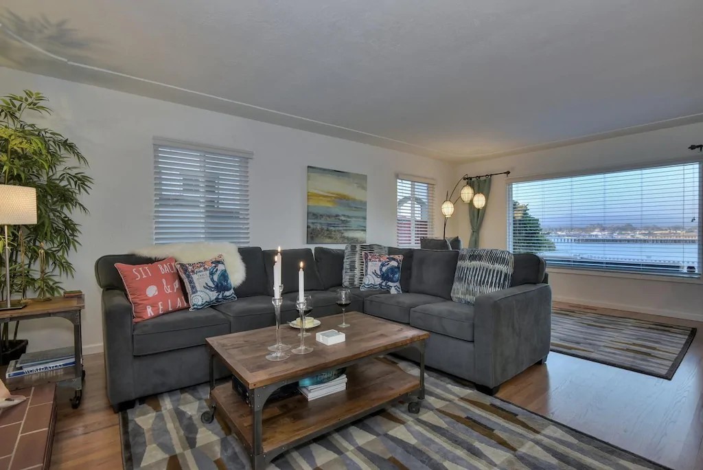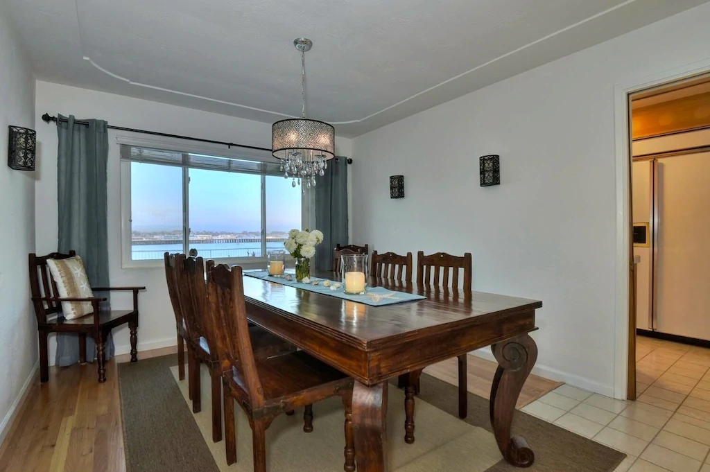 Ocean front on the West side of Santa Cruz, also known as “the new hip side” and the “heart of Santa Cruz surf culture”, this home captures the magical essence of all of Santa Cruz right in one place. The location and views of the Monterey Bay are extraordinary. Ocean views from several rooms, new hot tub w/ ocean views, fire pit, private outdoor shower and an unforgettable night view of beautiful lights from the Santa Cruz Wharf and the historic Santa Cruz Beach Boardwalk, both a short stroll away. The Wharf is known for dining, nightlife, viewing sea lions, gift shops, fishing and boat tours.