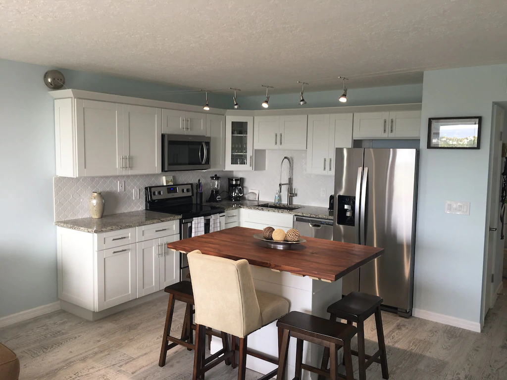 Ocean Oasis is a recently remodeled and tastefully decorated 1/1 condominium situated directly on the Atlantic Ocean on beautiful South Hutchinson Island. The unit sleeps 5 and is pet friendly (up to two well-behaved dogs) with leashed dogs allowed on the beach. Ocean Oasis is located in the Spoonbill building in beautiful and serene Indian River Plantation, also home to the Marriott Hutchinson Island Resort. Enjoy our private balcony directly overlooking the Atlantic Ocean. The building has a great pool with restrooms, lounge chairs and tables and a private beach entrance for Spoonbill and Pelican owners and their guests only. We provide four beach chairs and an umbrella for your use during your stay. Bring your boat! Rent a slip at the Marriott’s 77 slip marina. You can rent a boat or jet ski at that same marina. Paddleboards, surf boards, and snorkel gear are also available for rental just across the street from IRP.