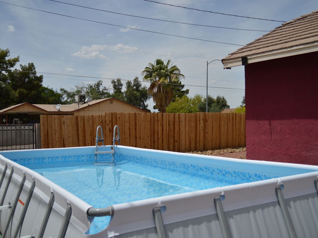 This 3300 square ft. 7 bedroom 3.5 bathrooms home features a swimming pool, pool table, playground area, sand volley ball court, and a air hockey table. This house has 7 flat screen tv\'s throughout the house. The top floor suite has a loft area that sits outside of it\'s double doors. On the main level theres a beautiful spacious master bedroom with a full bathroom and a large closet area. This beautiful home could accommodate up to 14 people comfortably. This property is located in a quite neighborhood four blocks from Walmart, and restaurants such as McDonalds, Burger King, Panda Express, Subway, El Polo Local, Pizza, Starbucks and so much more. 10 minute drive to the Great Fremont Experience Downtown Las Vegas, also just 12 minutes away from The Beautiful Las Vegas Strip and Convention Center.