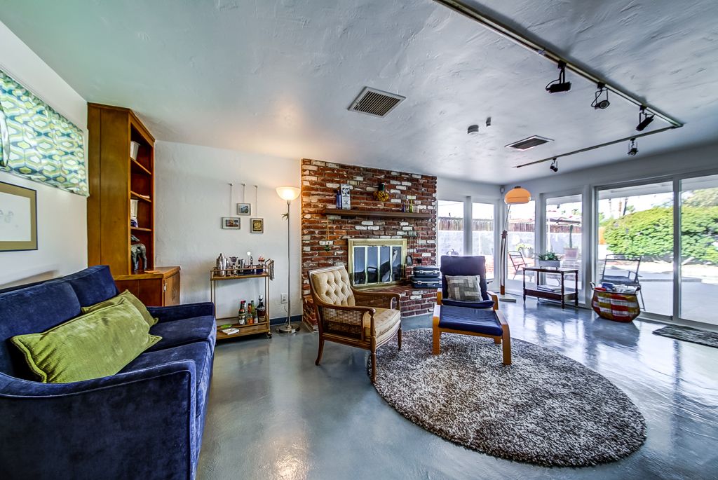 The second living area is a large sunroom with a comfy sofa, armchairs, bar area, fireplace, and view of the lush backyard, pool, and spa. Den & Dining AreaThere s a small den adjoining the dining room that s perfect for reading or socializing.
