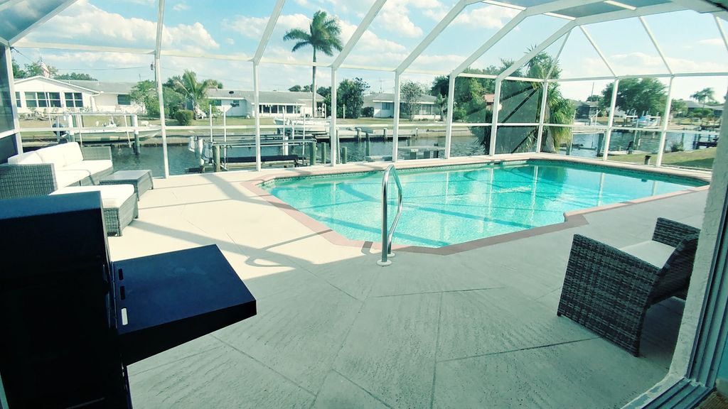 Newly remodeled 2300 square-foot home has a 15 x 30 heated salt water pool. Sitting directly on the Sunrise waterway canal, just minutes from the Gulf. Relax swimming in the spectacular pool or while fishing from the private dock. If golf is your thing 32 private, semi private and public golf courses await within 20 miles. Enjoy collecting sharks teeth with the family at Englewood or Venice Beaches less than 25 miles away, we even provide the special shelling scoops to help sift through the shells..spring training, we\'ve got that too, less than 10 minutes away.
