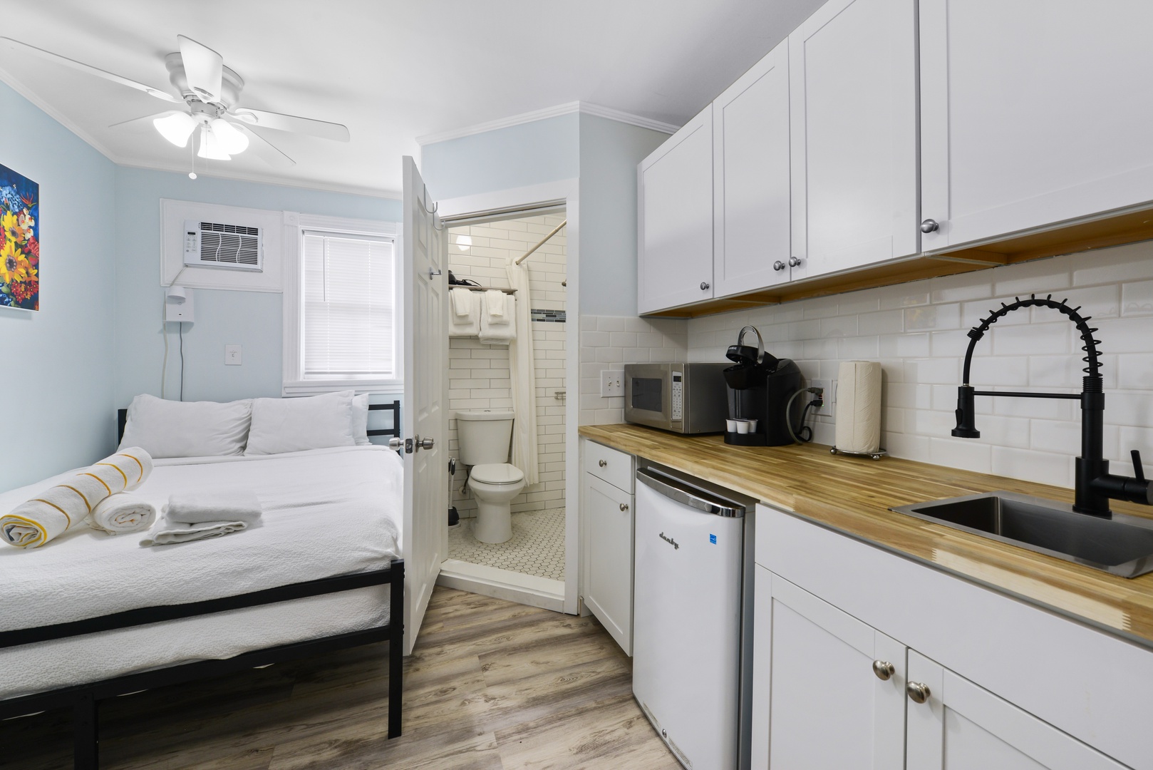 This studio has been lovingly updated and is a wonderful space in historic Old Town to enjoy all of Key West! The unit features a comfy queen size bed, kitchenette and nicely tiled bathroom. Free Wifi will make it easy to keep up with business or your social media posts during your stay. The Galleria complex offers a pool for all guests to enjoy a dip or to relax around it while reading, conversing or just recharging in between your island adventures.