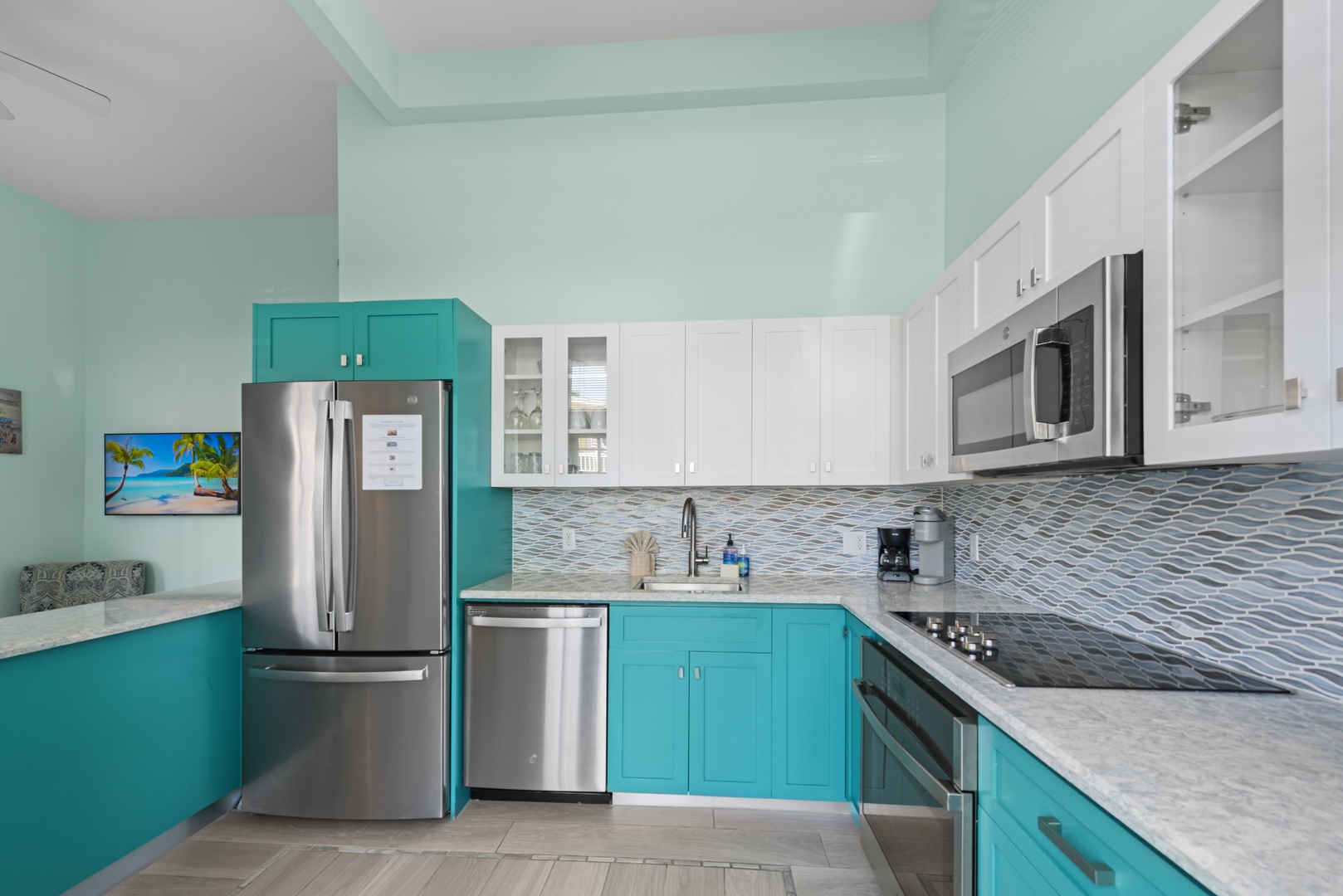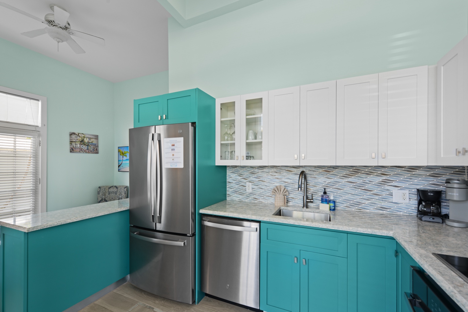 Open the door to the full kitchen offering a refrigerator, stove/oven, microwave, and coffee maker. Your group\'s chef can keep up the chatter with friends or family sitting in the living room with La Casa de Luna\'s open floor plan. There is a queen sleeper sofa in the living room, so the condo will accommodate up to four people. The full bath comes supplied with all the amenities you need, including plush towels and wash cloths. A stacking washer & dryer have been added to the condo to make traveling even more comfortable.