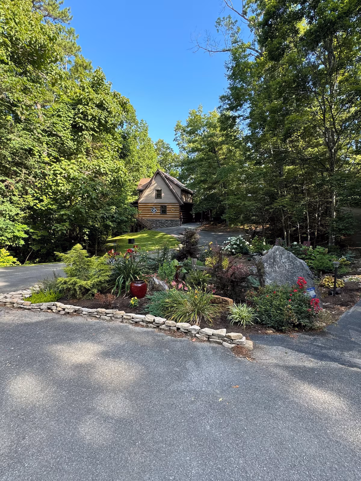 Step into a peaceful wooded setting to experience A~Bear\'s Den. We are snuggled in a nice private lot with yard and parking space. We offer a covered parking area and have a turnaround space - all paved! You can experience our fabulous mountains with nice, paved roads!