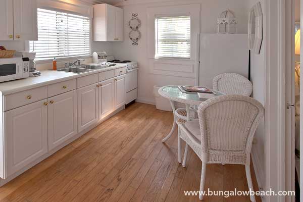 A cozy 1 bedroom bungalow complete with a full kitchen, queen size bed, queen sleeper sofa and jacuzzi jet bathtub in its well sized bathroom. The porch does have a view of the water as it looks down between the beach front bungalows on the other side of the lush tropical courtyard. The courtyard comes with a barbeque area and fire pit. This bungalow is great for a romantic getaway or a couple with small children having a family vacation on the beach.