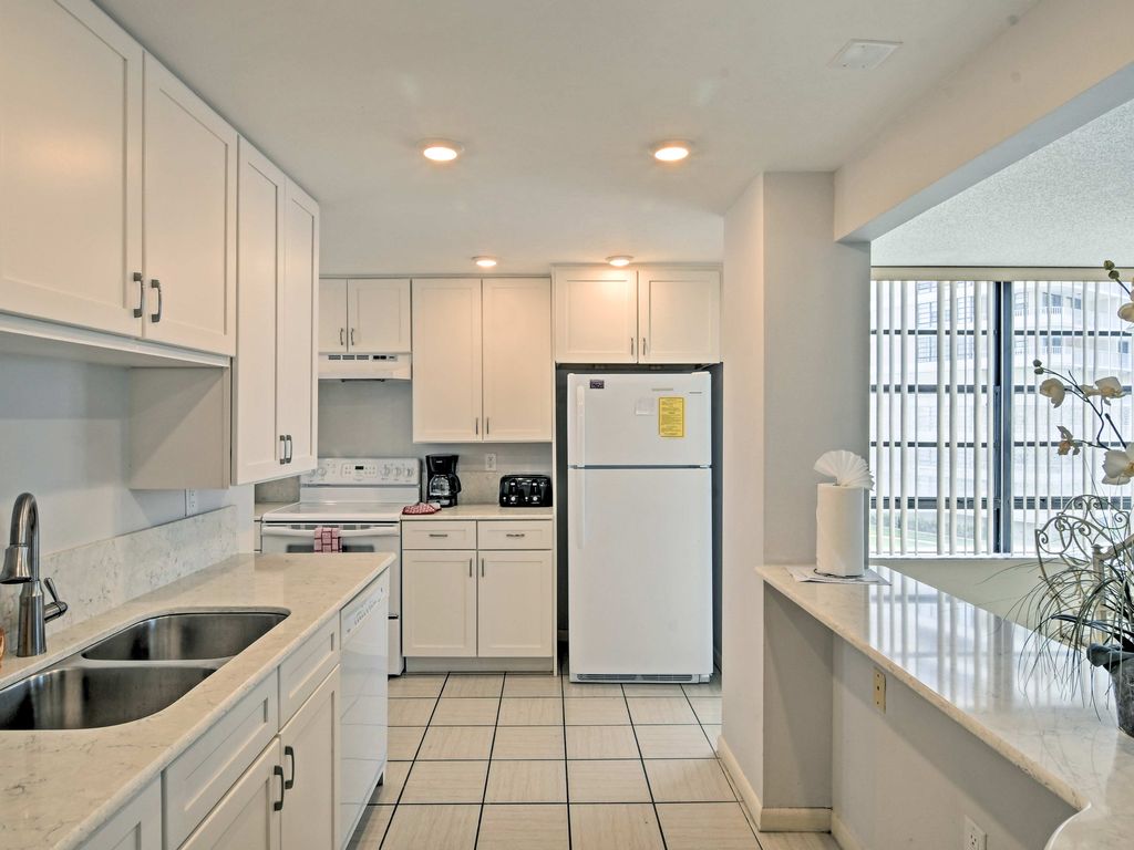 Start your day on the east-facing balcony; sipping coffee as the sun brings Marco Island to life! Once late snoozers rise, head back inside for a hearty breakfast easily prepared in the fully equipped kitchen. Fuel up around the 4-person dining table before heading down to the white sand beach - located just steps from the resort!