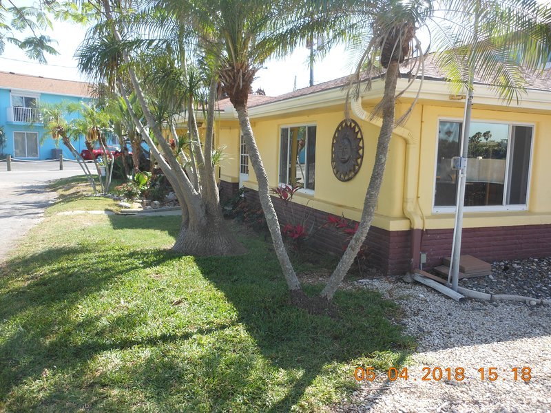 This is a two bedroom/2bath home in Bradenton beach, with washer/dryer, new kitchen (granite counters), big screen/WiFi, great fishing on your own dock, on a quiet street, five minute walk to bridge street shopping area, two minute walk to the beach & restaurants, kayak, bicycle, fishing!! Watch dolphin hunt, snook at your feet, mullet jumping and of course the reason for the name "Manatee Cove" they come within a few feet of the dock! Beautiful view of skyway bridge from the swing and on a clear day the rays stadium. Every morning enjoy the beautiful sunrise from the dock or through the bay windows, and just across Gulf drive watch the most beautiful sunset!