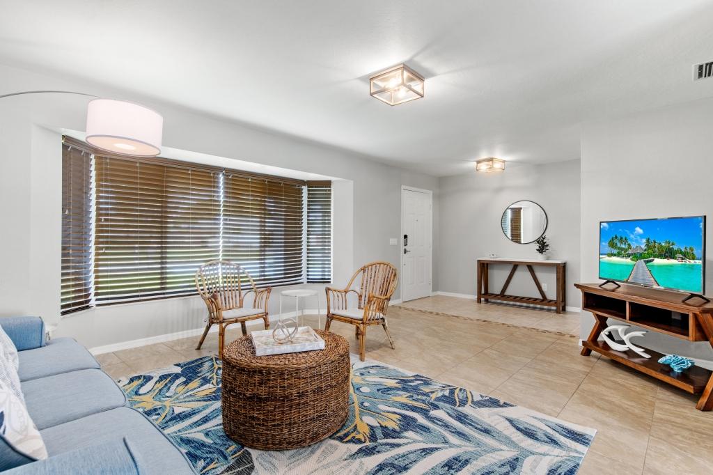 Enjoy your next vacation at this beautiful, gulf access pool home with a large lanai! Over 1,850 sq. ft. with 3 bedrooms, 2 bathrooms & two large living rooms. This home has been tastefully designed and furnished with Florida relaxation and enjoyment in mind! Just in case you need it, high-speed fiber optic internet & 3 Smart TVs are ready for you as well.