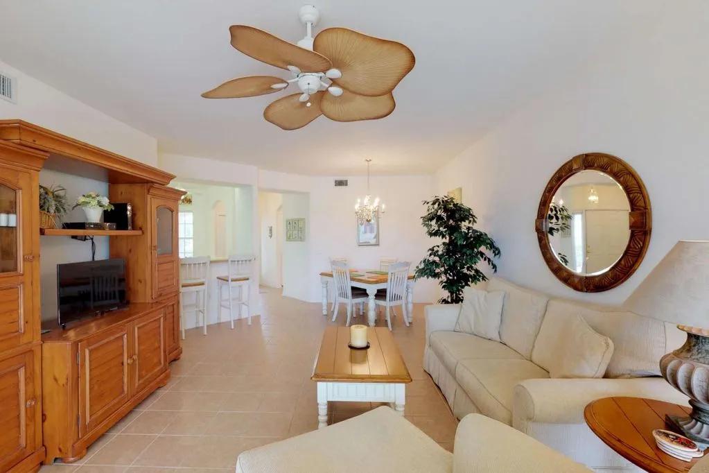 *Living room features glass sliding doors opening to the lanai that runs the length of the living room, with a beautiful view of the lake; inviting and comfortable seating, large flat screen TV with cable