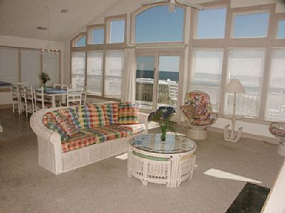 Arriving on the 3rd level, you will be greeted by a wall of glass with breathtaking views of the ocean from all areas. The entire 3rd level has an open design with areas for cooking, dining, and entertainment. After the day is done this is the place to feed the family, watch a game, brag about the one that got away and plan for tomorrow. The upper level also has a great room that boasts a home theater system with a large 60" flat screen TV, Blu-Ray DVD and surround sound for your entertainment with gas log fireplace. The well-appointed kitchen and dining areas offer many amenities for the chef. The great room and open kitchen with breakfast bar overlook the Ocean and pool for a spectacular view. The outside decks are furnished with comfortable Adirondack chairs for the ultimate enjoyment of the ocean views and refreshing breezes!