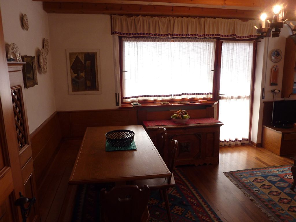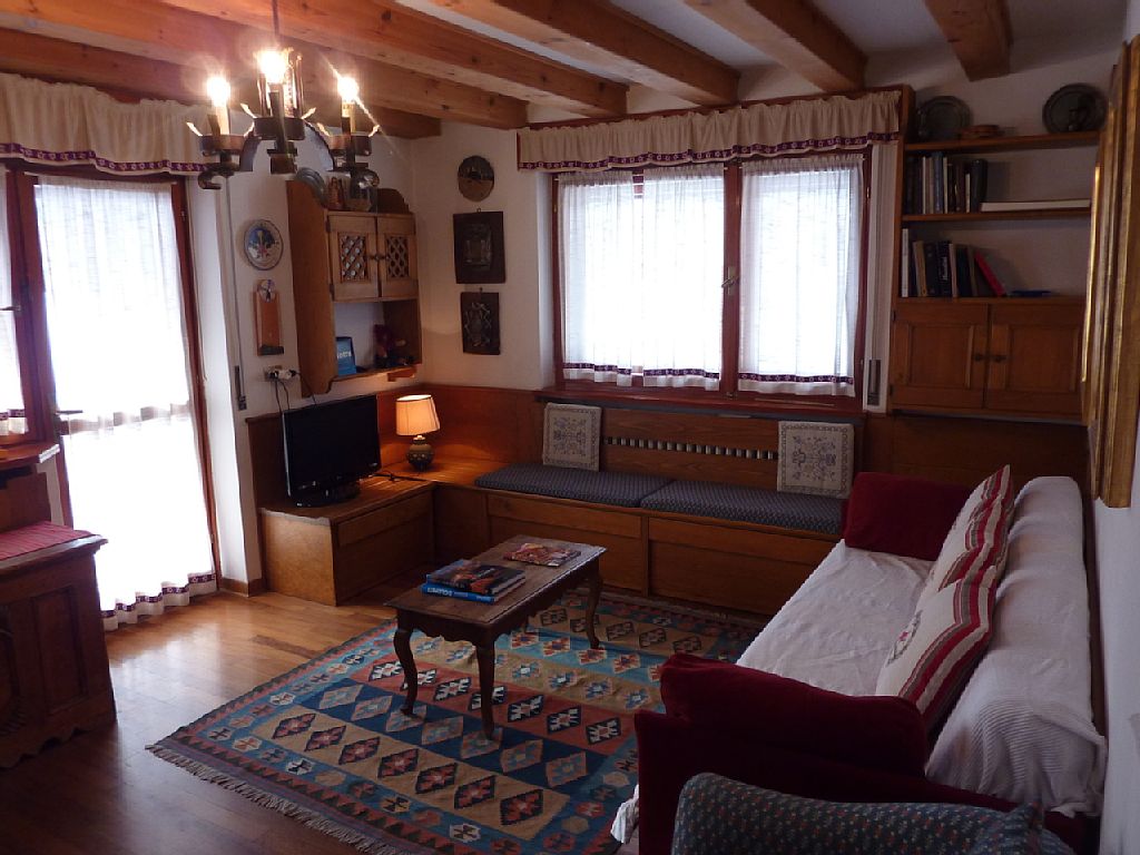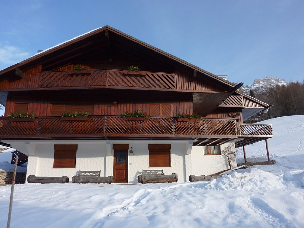 The house is situated in a private complex (which is accessed by a private road) of 12 villas, lovely location and very quiet, about 10 minutes walk from the center. The apartment is on the ground floor with a large porch with a table, chairs and deck chairs where you can enjoy a splendid view of the Dolomites (UNESCO World Heritage) of the Ampezzo valley. The apartment is about 85 square meters and consists of: entrance hall with compass, hall, kitchen, living room, 3 bedrooms (one double bed and two with bunk beds, 2 baths (redone in 2013, both equipped with shower, washbasin , toilet and bidet) and a porch of 25 sqm. The kitchen is equipped with dishwasher, washing machine, oven, microwave, toaster, etc. The apartment is also equipped with television and vacuum cleaner.