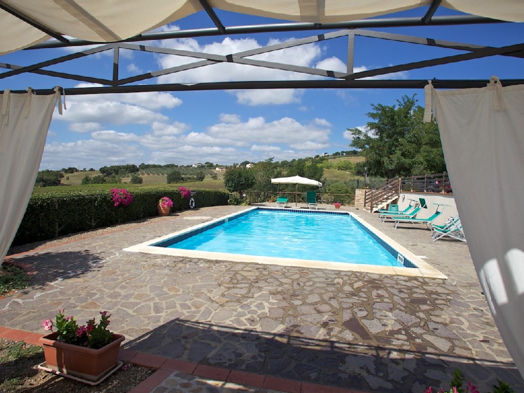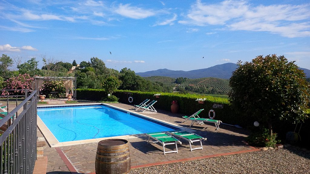 Casa Armini is a country villa situated in the countryside near Grosseto in Maremma Tuscany, only 5 minutes from the hill top village Roccastrada and 30 minutes from the seaside. The country house is surrounded by a huge, fenced garden with swimming pool and a playground with toys, all this offering a marvelous view over the surrounding countryside. In the garden there is also a barbecue as well as apizza/bread oven. The villa is subdivided over two floors, one for each apartment. It is also possible to rent both apartments together, obtaining in this way an entire single house offering space for up to 16 people. Each apartment has an independent entrance, satellite TV, dishwasher, washing machine and drying racks, wi-fi internet connection, microwave, electric water kettle, electric coffee machine, Italian moka kettle for espresso, highchair. On request it is possible to get a cot, baby tub and changing table. Ground Floor Apartment (110 sq.m., 8+2 pers.): � portico � kitchen with direct access into the garden � characteristic and very spacious dining room with stone fireplace and long dining- table � 2 double rooms � 2 double rooms with the possibility to add one extra bed � 2 bathrooms � veranda watching over the pool with the underneath lying Maremma countryside First Floor Apartment (80 sq.m., 4 pers.): � indipendent entrance � kitchen/dining room � living room with fireplace, sofa bed for 2 persons and direct access onto the huge terrace, covering two sides of the house � double room � bedroom with two single beds � bathroom with shower