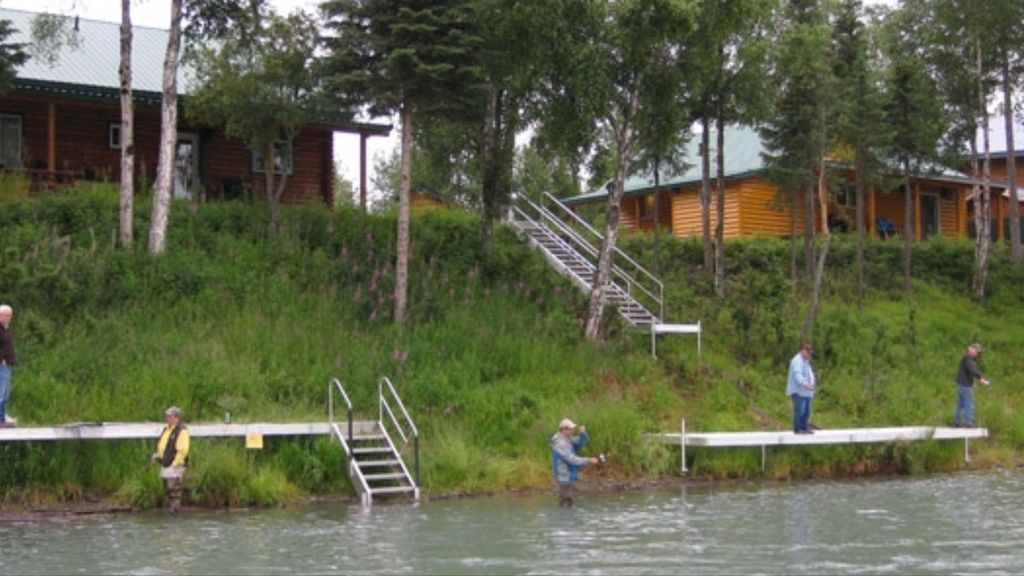 One of three log cabins on the bank of the Kenai River at River Rock Lodge. We are close to town and it's many amenities. Cabin has a fully equipped kitchen plus a grill. Master bedroom has large sliding glass doors that look out at the river! We rent fishing gear for $20 a day per person. There are 3 docks to fish from. After fishing all day, you can hang out on the cabin porch or around the fire pit with your friends or family. We have everything you need to have a pleasant stay!