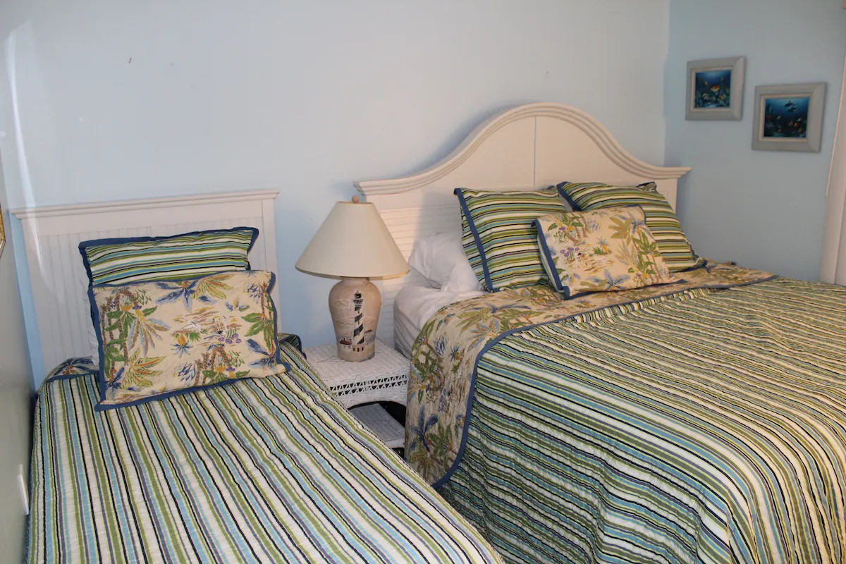 Decorated beautifully with upscale taste. The fully equipped kitchen is well stocked. The dining area sits 6 people comfortably. There is a large 55" HD flat screen TV in the living room with an additional TV in the master bedroom A spacious master bedroom suite offers ocean views, a king-size bed, and private bathroom. The second guest bedroom has a king bed and a twin bed with a separate bathroom.