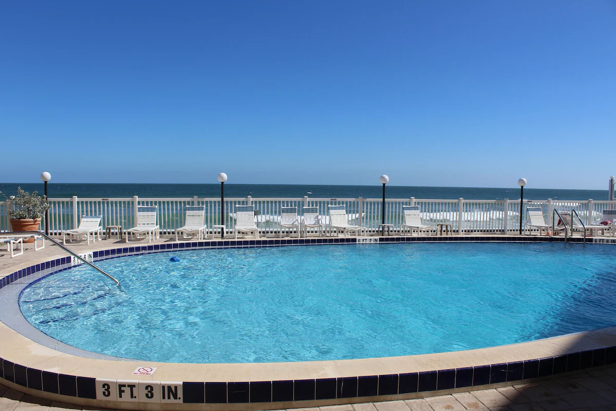 Welcome to the Paradise Beach Club on the Atlantic Ocean! The beautiful, newly renovated and well-maintained building is as close to the beach as you can get! The large heated pool and all-glass enclosed exercise room overlook the ocean. The complex was built right next to the sea wall so that it is closer to the ocean than any other building in the County. It is perfectly situated on a beautiful quiet stretch of beach, yet very close to shopping and restaurants.